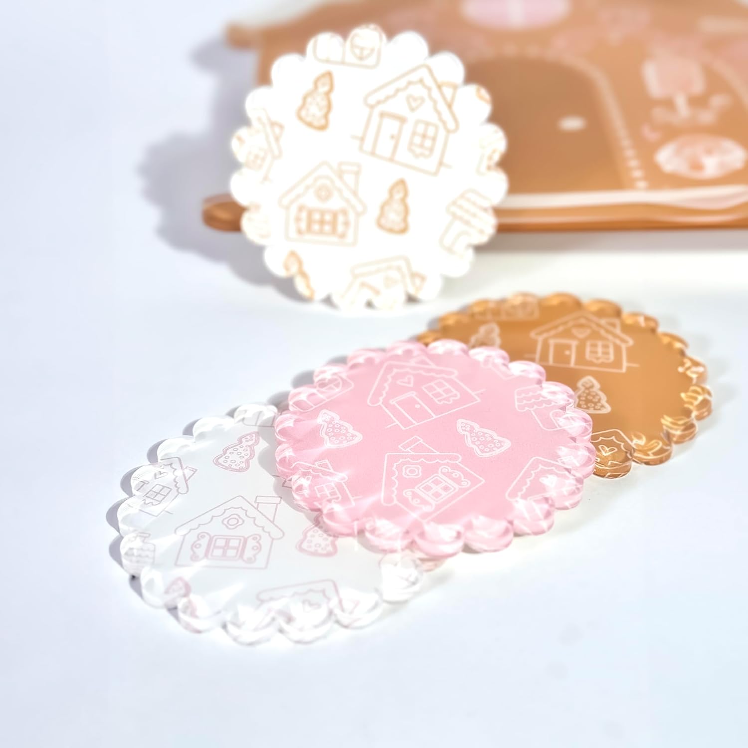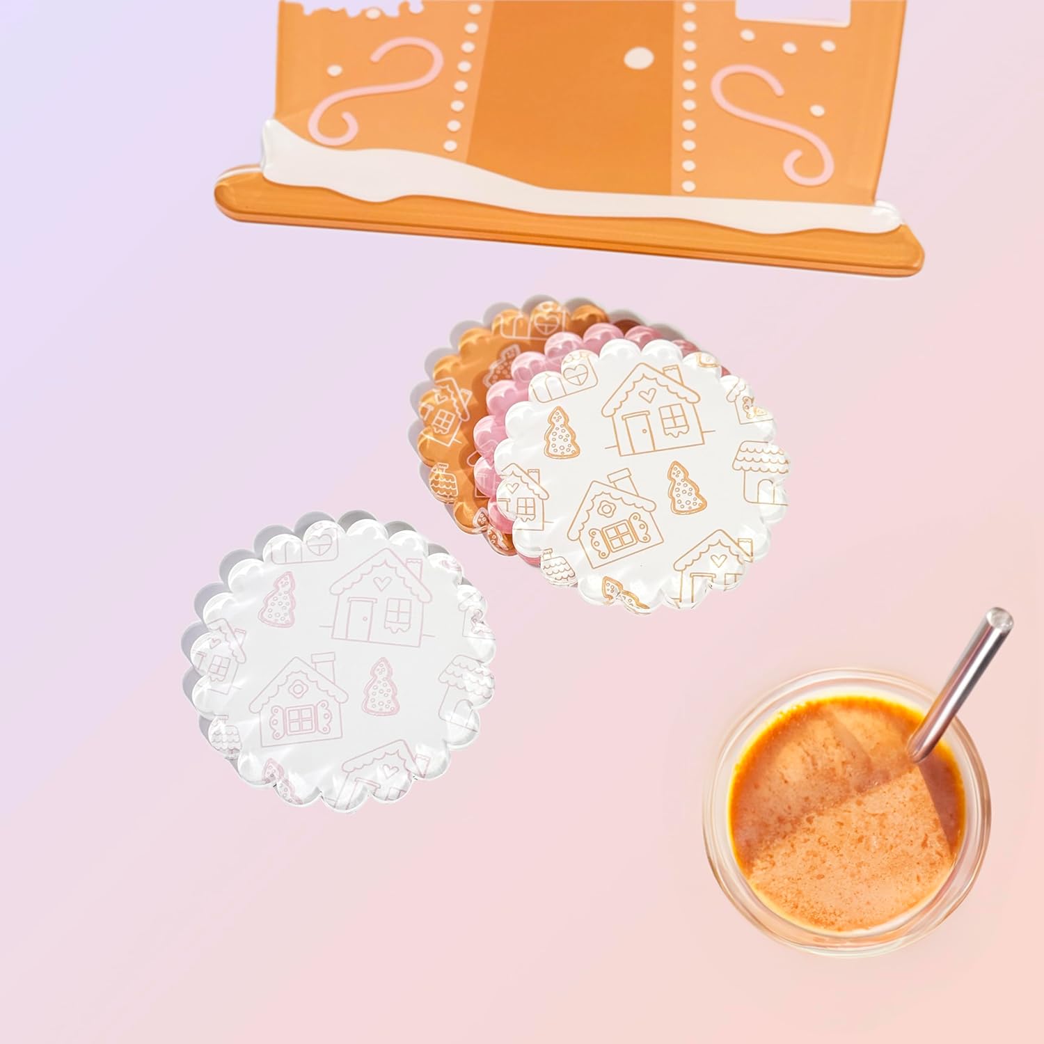 Set of 4 Scalloped Acrylic Coasters – Christmas Gingerbread House