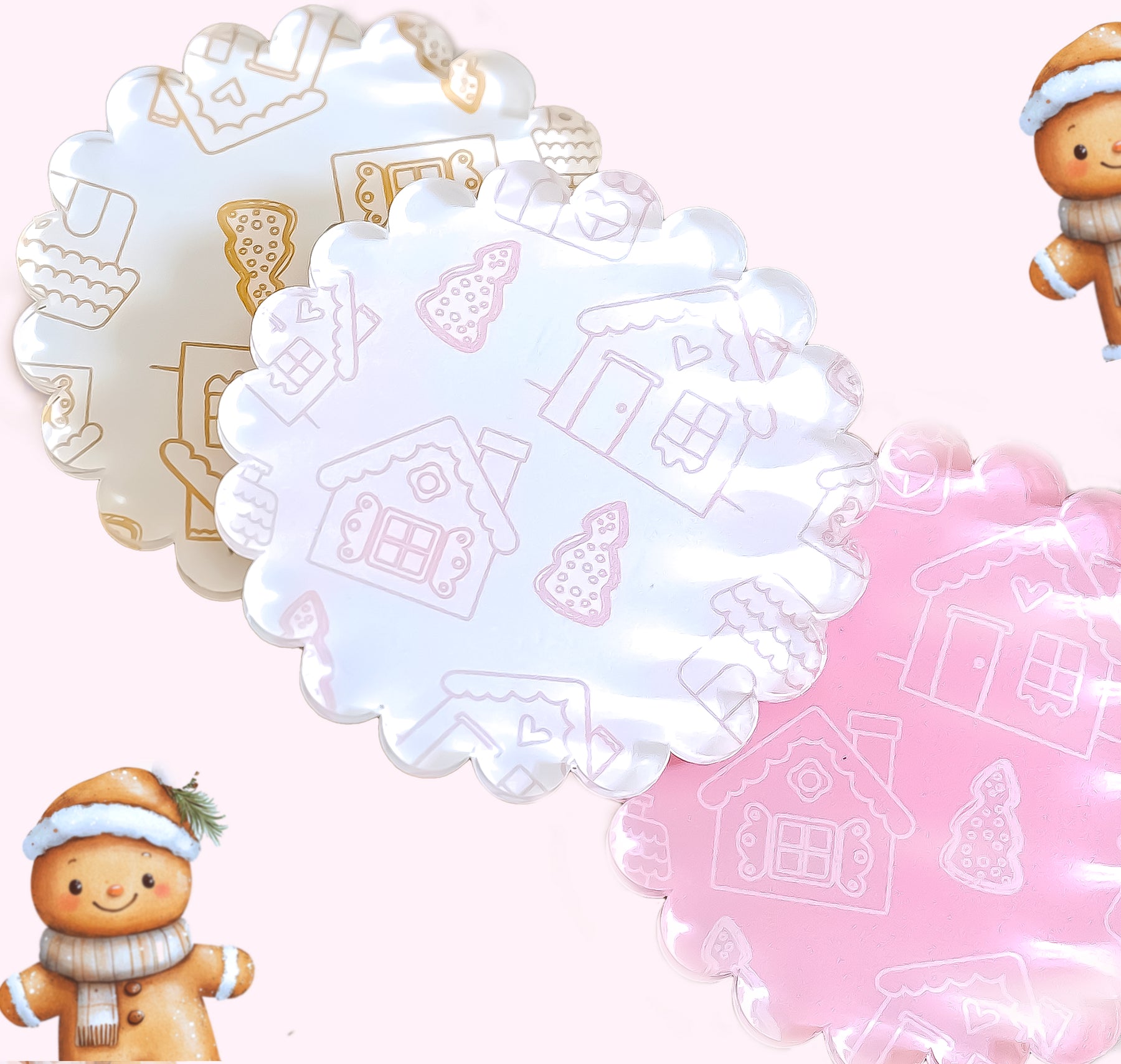 Add a festive touch to your holiday décor with this charming Acrylic Coaster Set of 4. Each coaster features a beautiful scalloped shape and a delightful gingerbread house and Christmas tree print, perfect for enhancing any holiday gathering. Crafted from durable 1/4" thick acrylic, these coasters not only protect your surfaces from spills and condensation but also bring a playful, stylish vibe to your home.